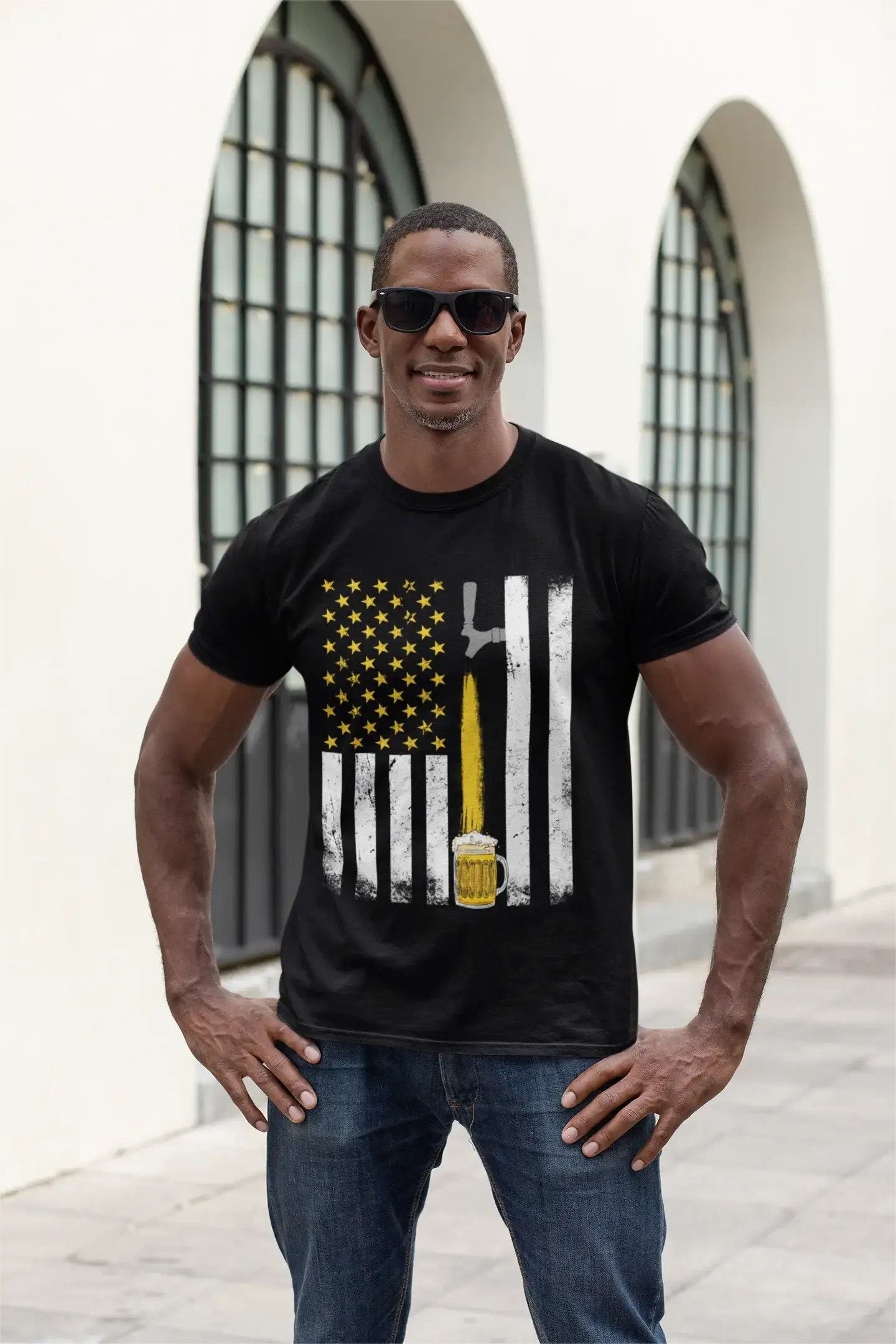 ULTRABASIC Herren-T-Shirt mit Bier-Amerika-Flagge – patriotisches Bierliebhaber-Trink-T-Shirt
