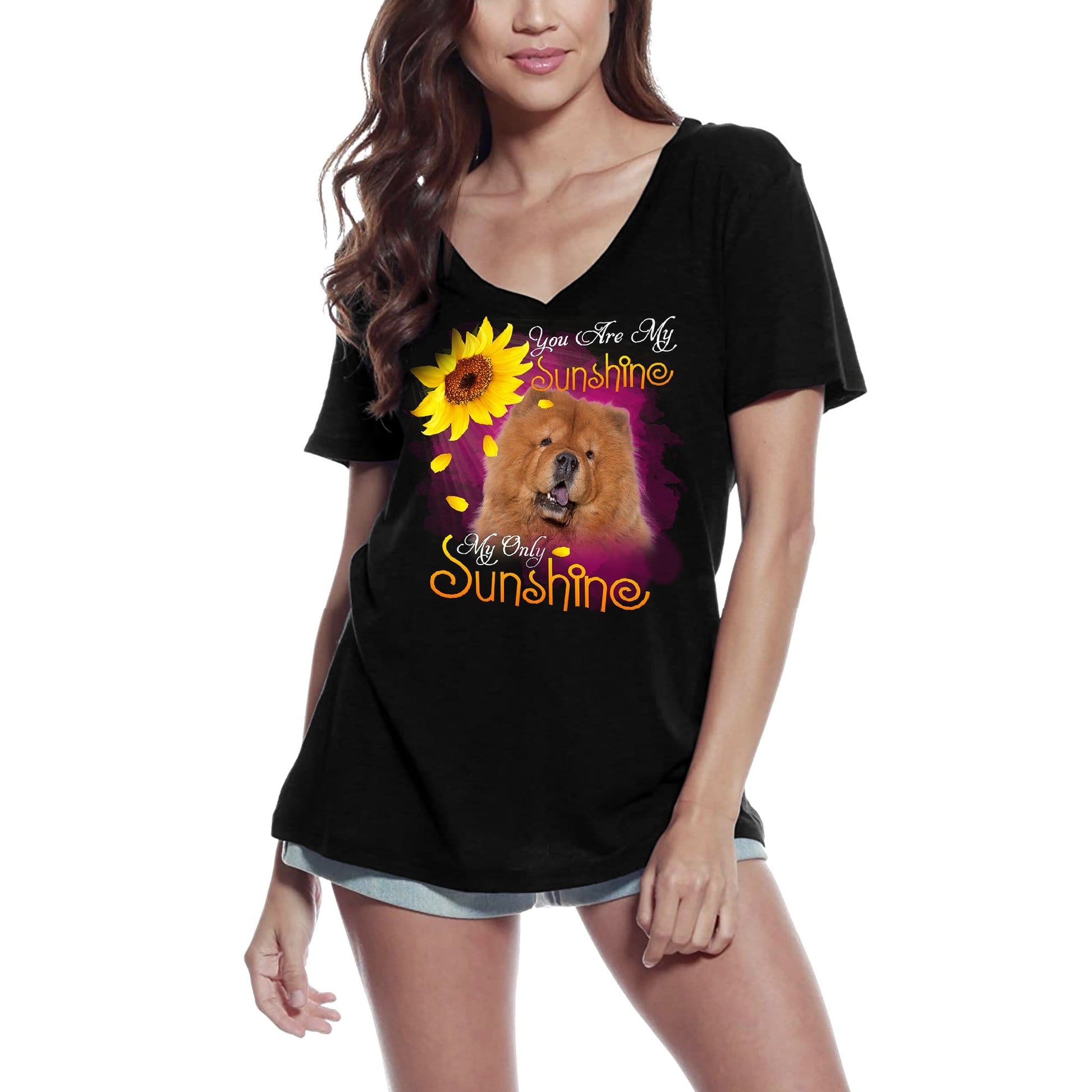 ULTRABASIC Women's V-Neck T-Shirt My Only Sunshine - Chow Chow - Vintage Shirt