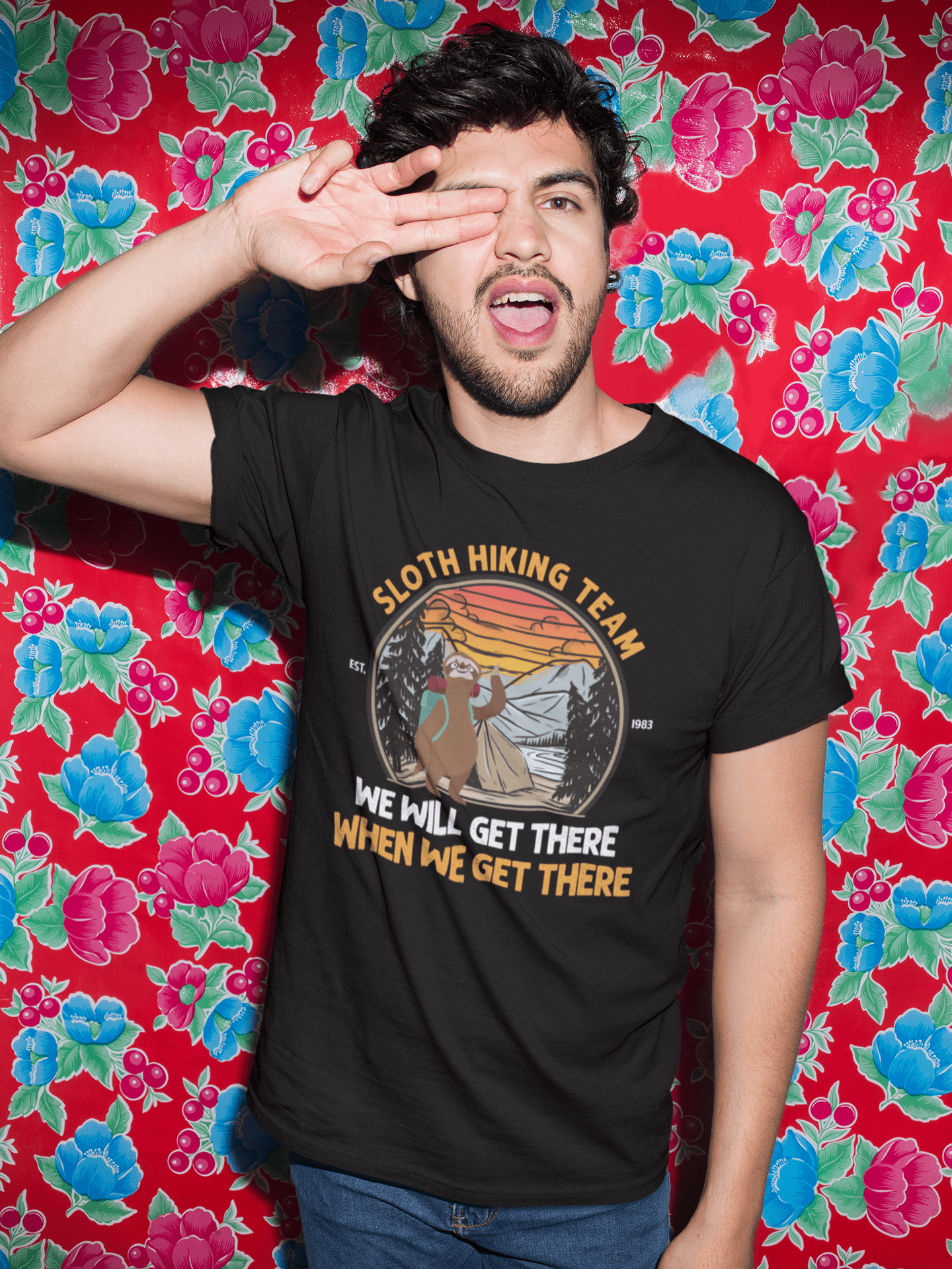 ULTRABASIC Men's T-Shirt Sloth Hiking Team - Funny Mountain Hiker Tee Shirt