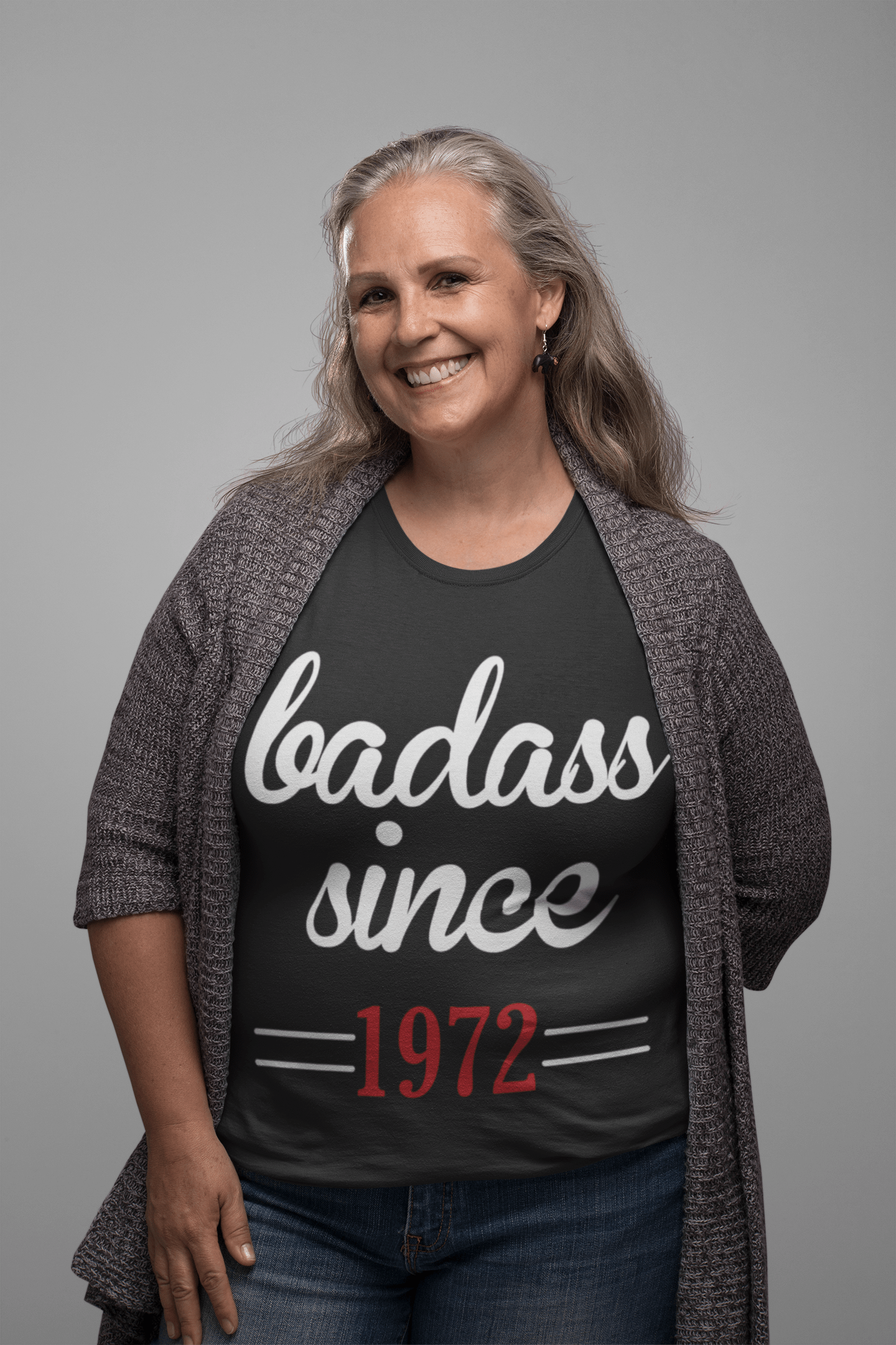 Badass Since 1972 Women's T-shirt Noir Anniversaire Cadeau 00432