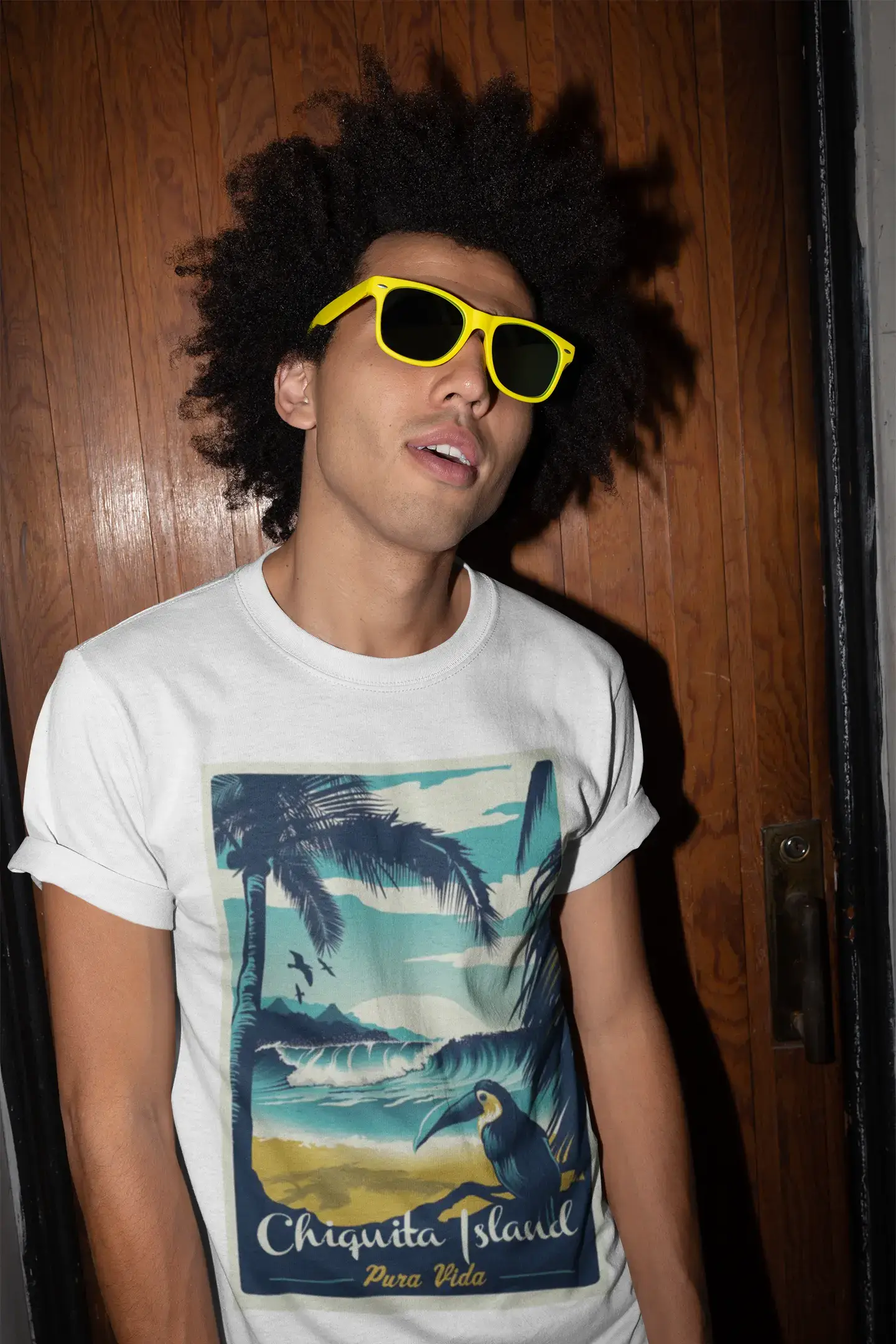 Chiquita Island, Pura Vida, Beach Name, T-shirt à manches courtes, 100% coton, encolure ronde, coupe ajustée.