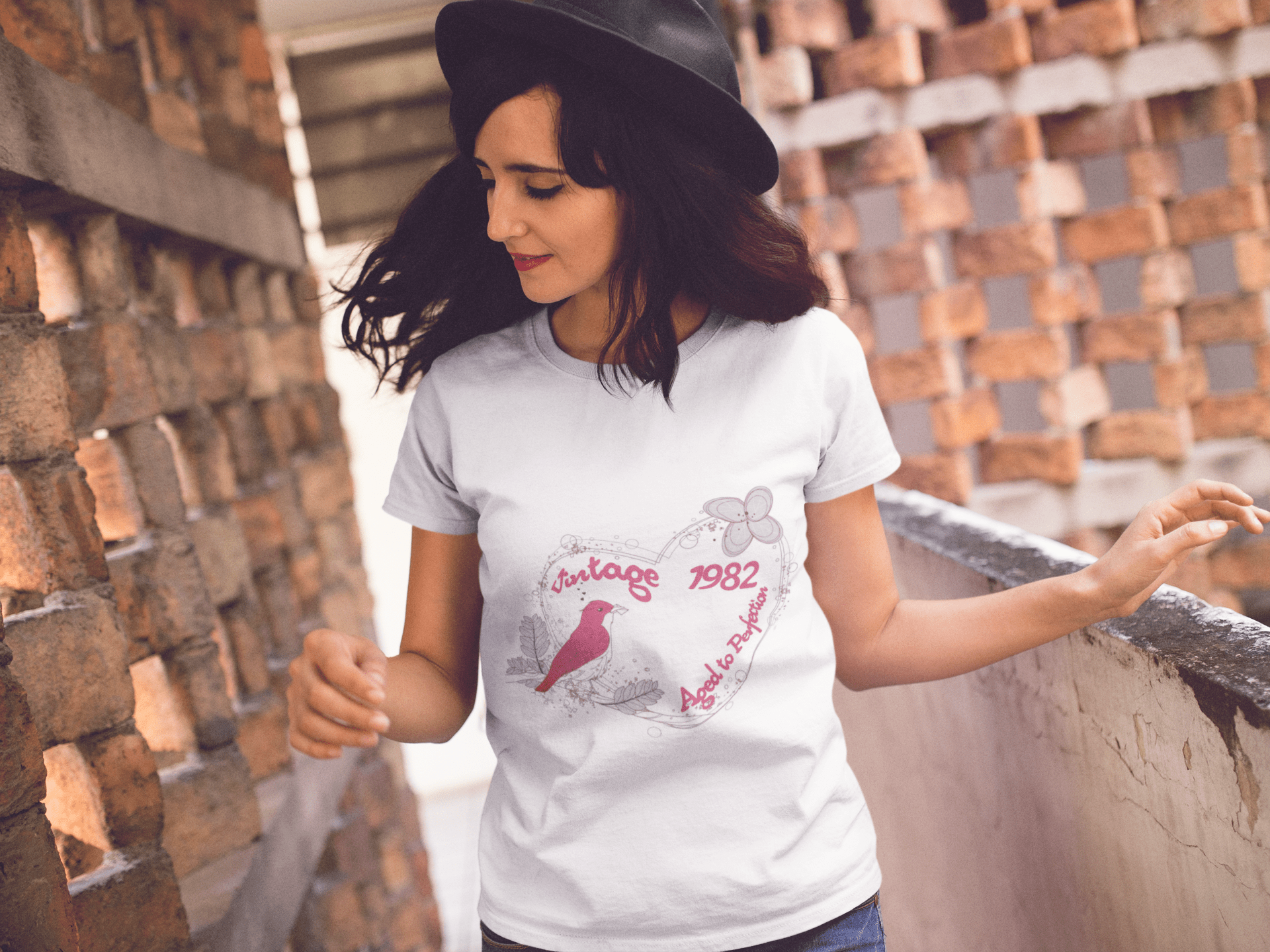 1982 Pretty t-shirt, White,100% cotton, available in sizes XS, S, M, L, XL.