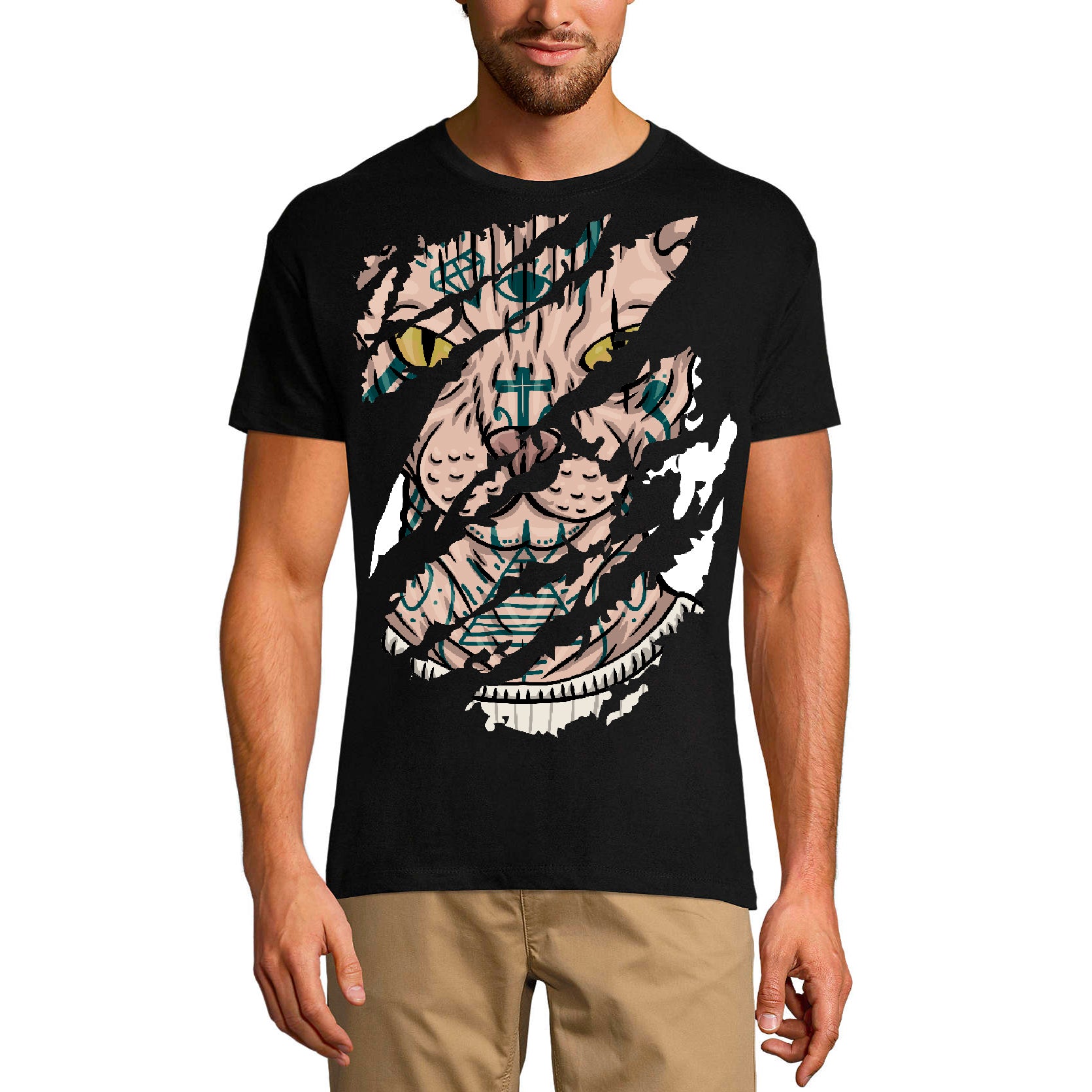 ULTRABASIC Men's Torn T-Shirt Sphynx Cat - Hairless Kitten Vintage Shirt for Men