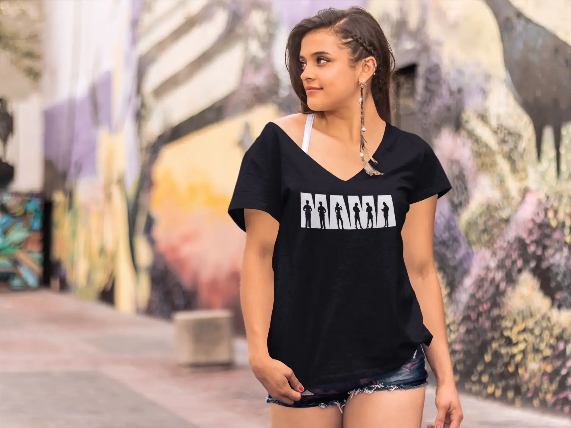 ULTRABASIC Women's V Neck T-Shirt Mama In Action - Mom Tee Shirt for Mothers