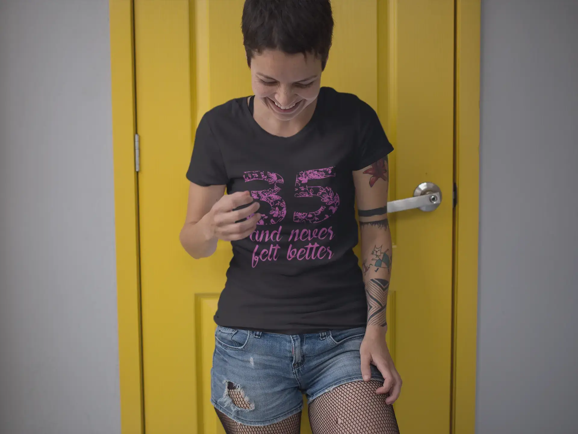 35 And Never Felt Better, Black, Pretty t-shirt, 100% cotton, available in sizes XS, S, M, L, XL.
