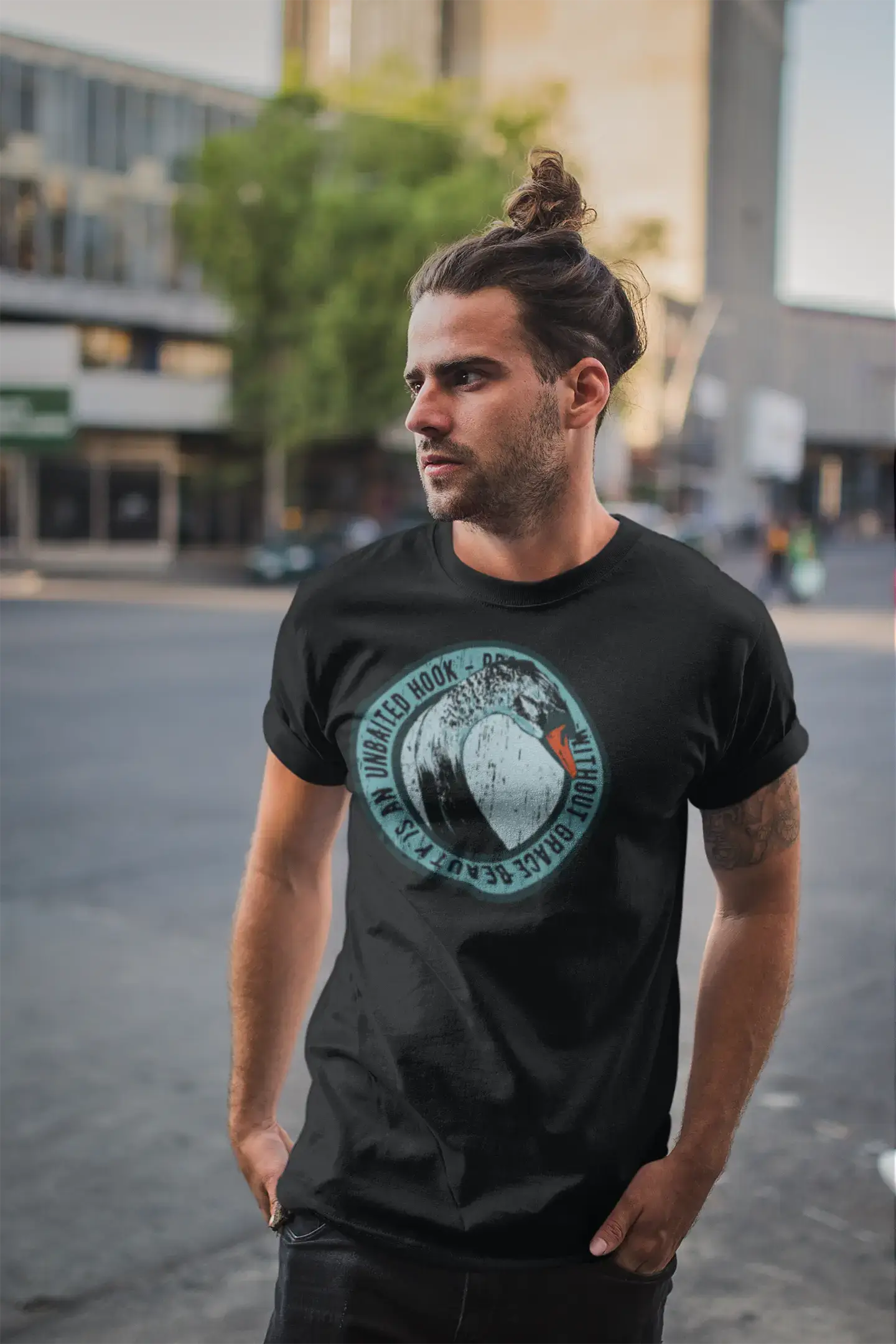 ULTRABASIC Men's T-Shirt Without Brace Beauty is an Unbaited Hook - Swan Shirt