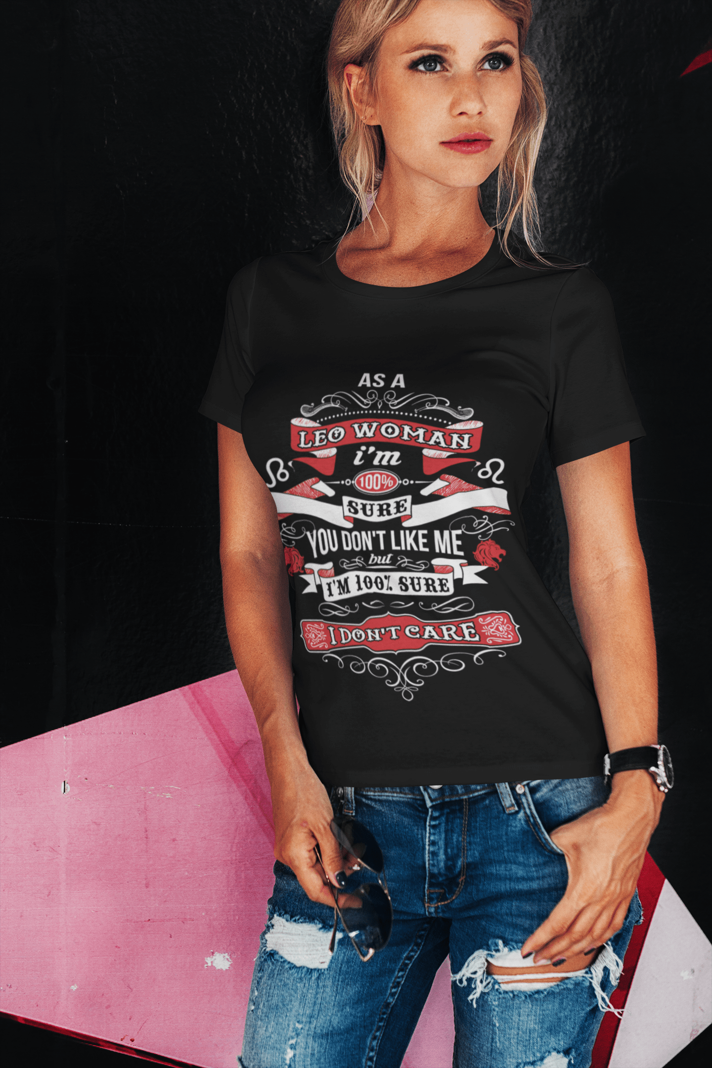 ULTRABASIC Women's Organic T-Shirt Leo Woman 100% Don't Care - Funny Birthday Zodiac Shirt