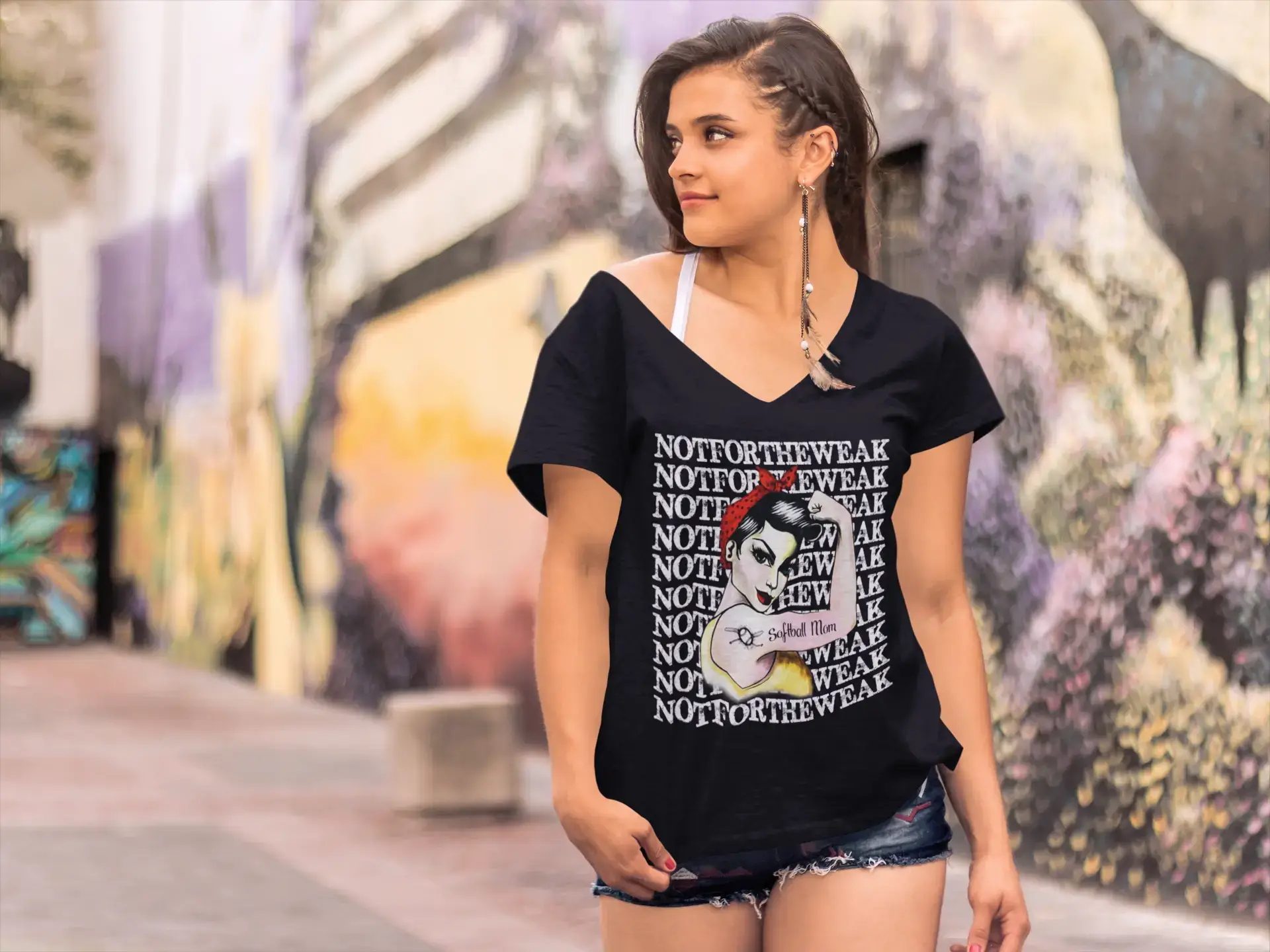 ULTRABASIC Women's V-Neck T-Shirt Not For The Weak Softball Mom - Funny Mom's Quote