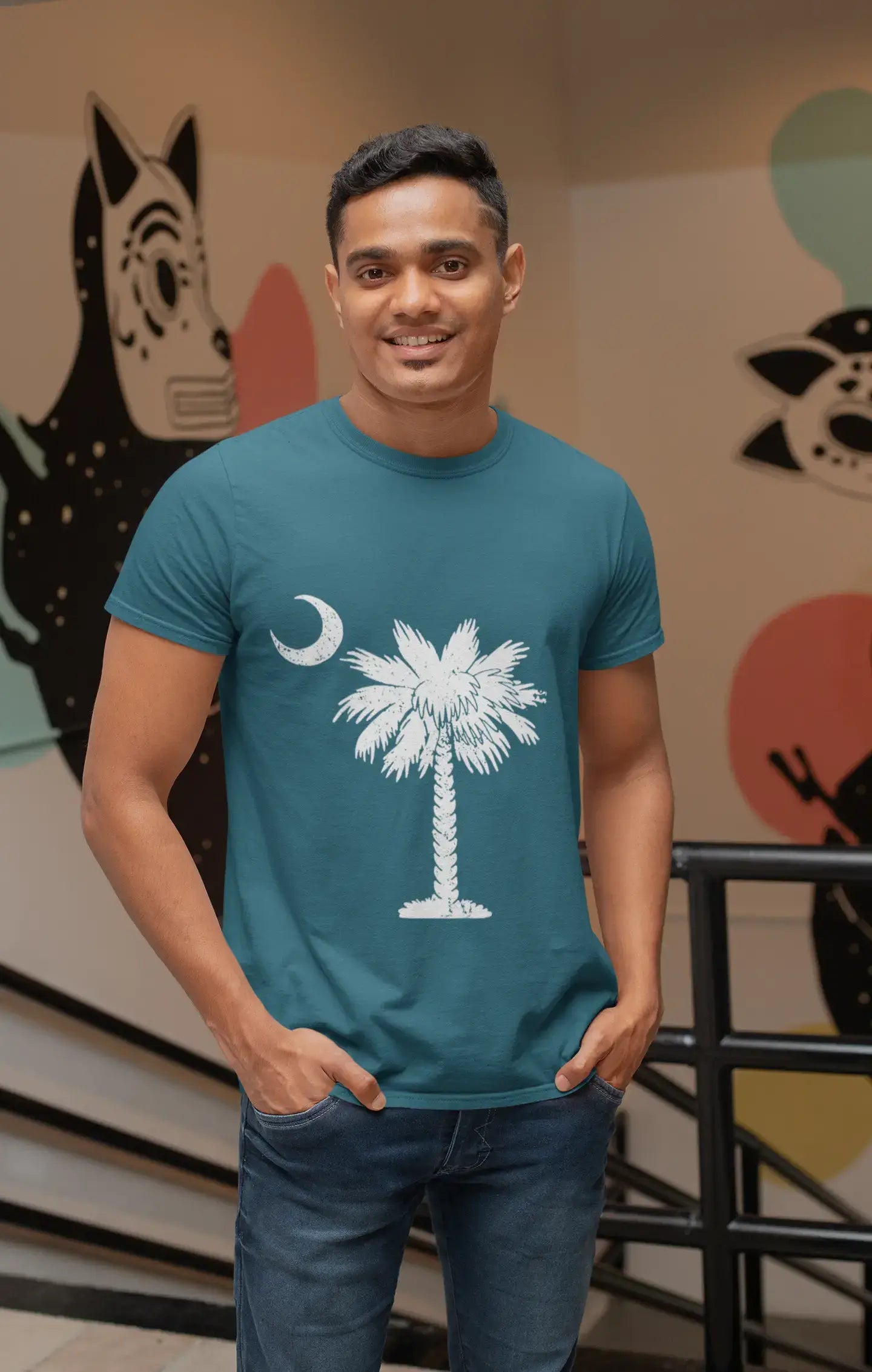 Graphic Men's South Carolina Flag T-Shirt White Print Tee Deep Black