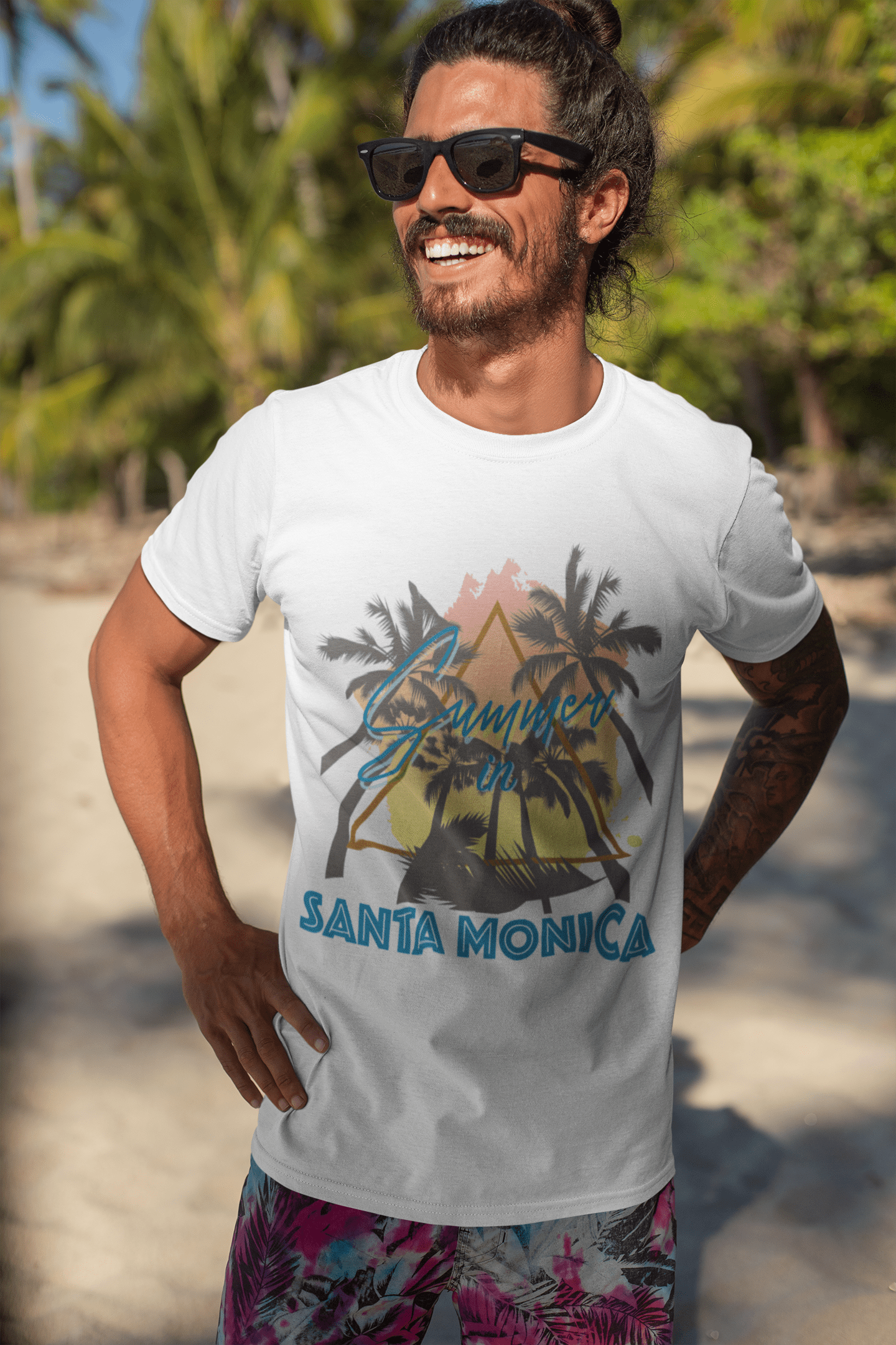 Men's Graphic T-Shirt Summer Triangle Santa Monica White